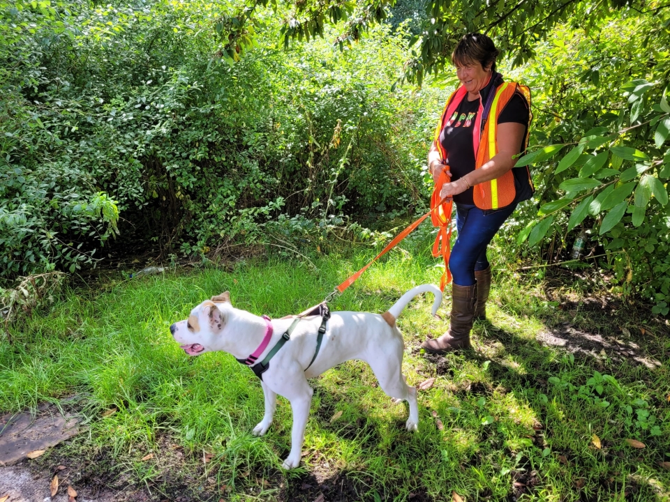 Mantrailing is a very inclusive and low-impact sport. Unlike some other dog activities, you don’t need to be very fit and your dog doesn’t need to be a top athlete in order to participate. Dogs that are less mobile and not able to participate in more rigorous activities/sports can usually take part in and benefit from trailing. As dogs are worked individually, reactive dogs can almost always be accommodated on a session, and you may find that mantrailing can help improve your reactive dog’s behaviour.