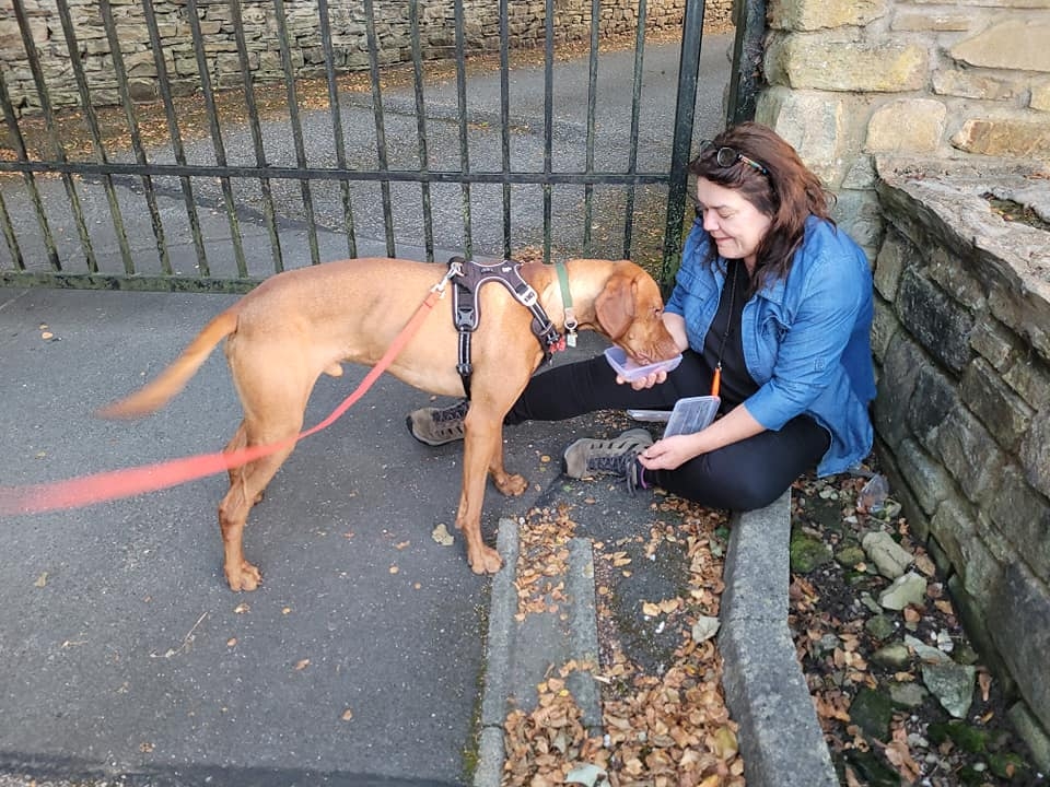 Mantrailing is an addictive, fast-growing dog sport in the UK, in which pet dogs are taught scent discrimination, allowing them to follow a pre-laid trail to find a specific target. In simple terms, it’s a game of hide and seek for your dog! For new mantrailing teams, trails start out simple, and as you and your dog gain more confidence, they become longer and/or more complex. Mantrailing is practiced in a variety of different environments, including urban, semi-urban and rural. One week you could be trailing in a town centre, and the next week in a country park. Each environment introduces new challenges and distractions for your dog.